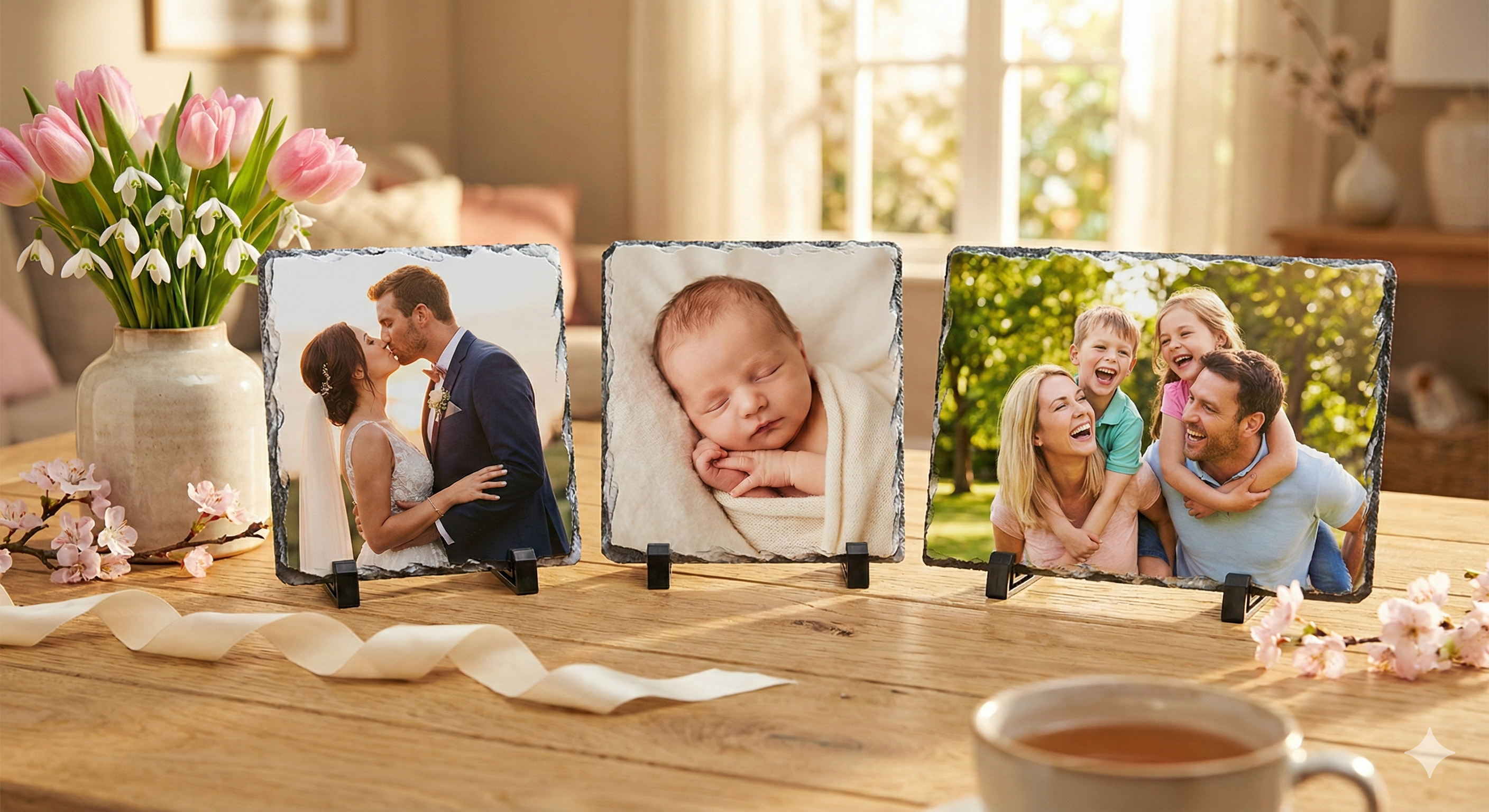 Pentru femeile puternice și importante din viața ta, alege un cadou cu greutate. Ardezia personalizată nu este o simplă ramă foto. Este o bucată de rocă naturală, cu margini nefinisate, brute, pe care imprimăm fotografia ta la o calitate excepțională.